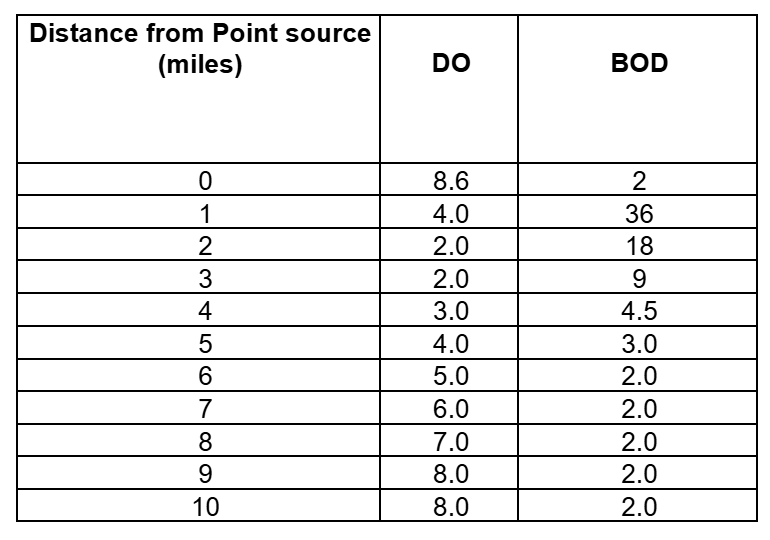 2. Plot the DO and BOD levels versus the distance downstream of a point source of pollution.