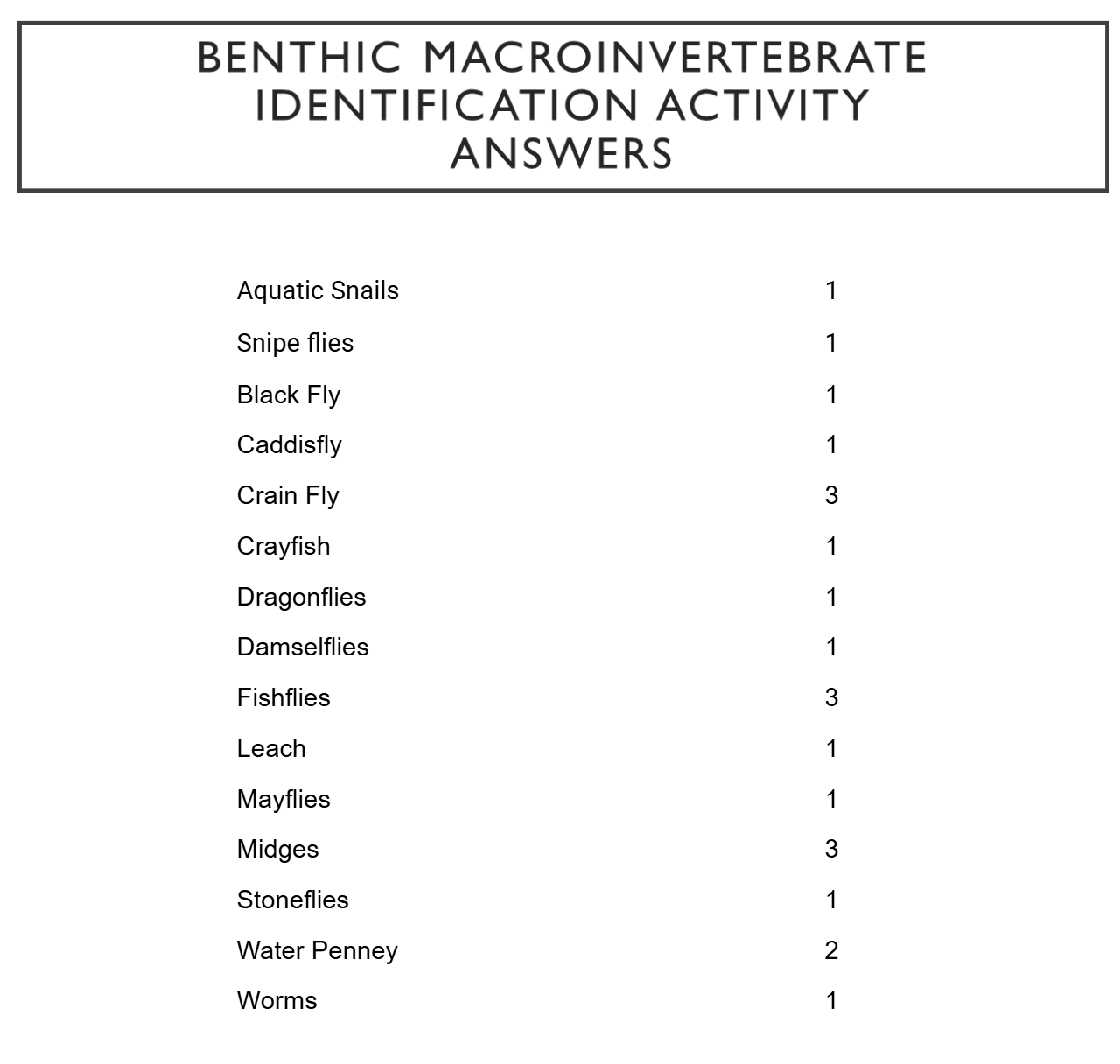 Macroinvertebrate Identification Program noting which types are most abundant.